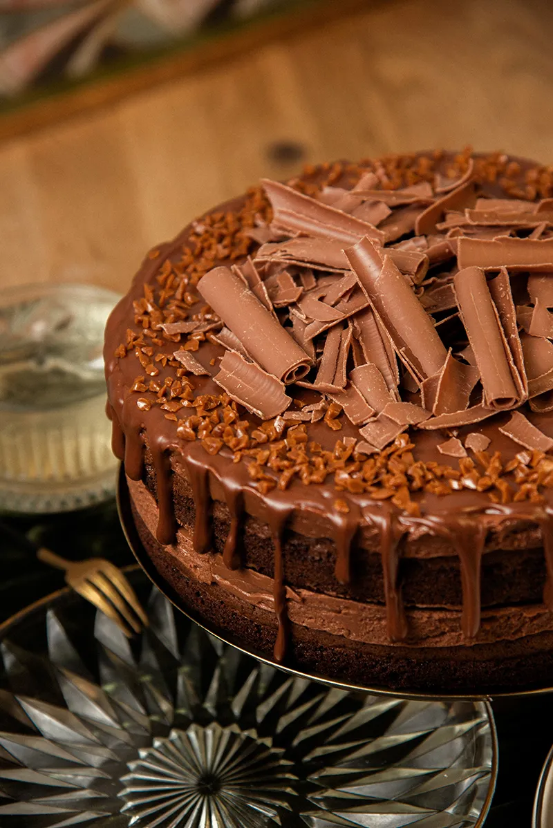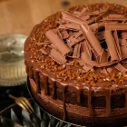 Шоколадови брауни блатове, фин шоколадов мус с ром и сладко от вишни.