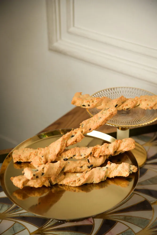 Пръчици с аромат на розмарин, мащерка, масло, кашкавал и маслини.